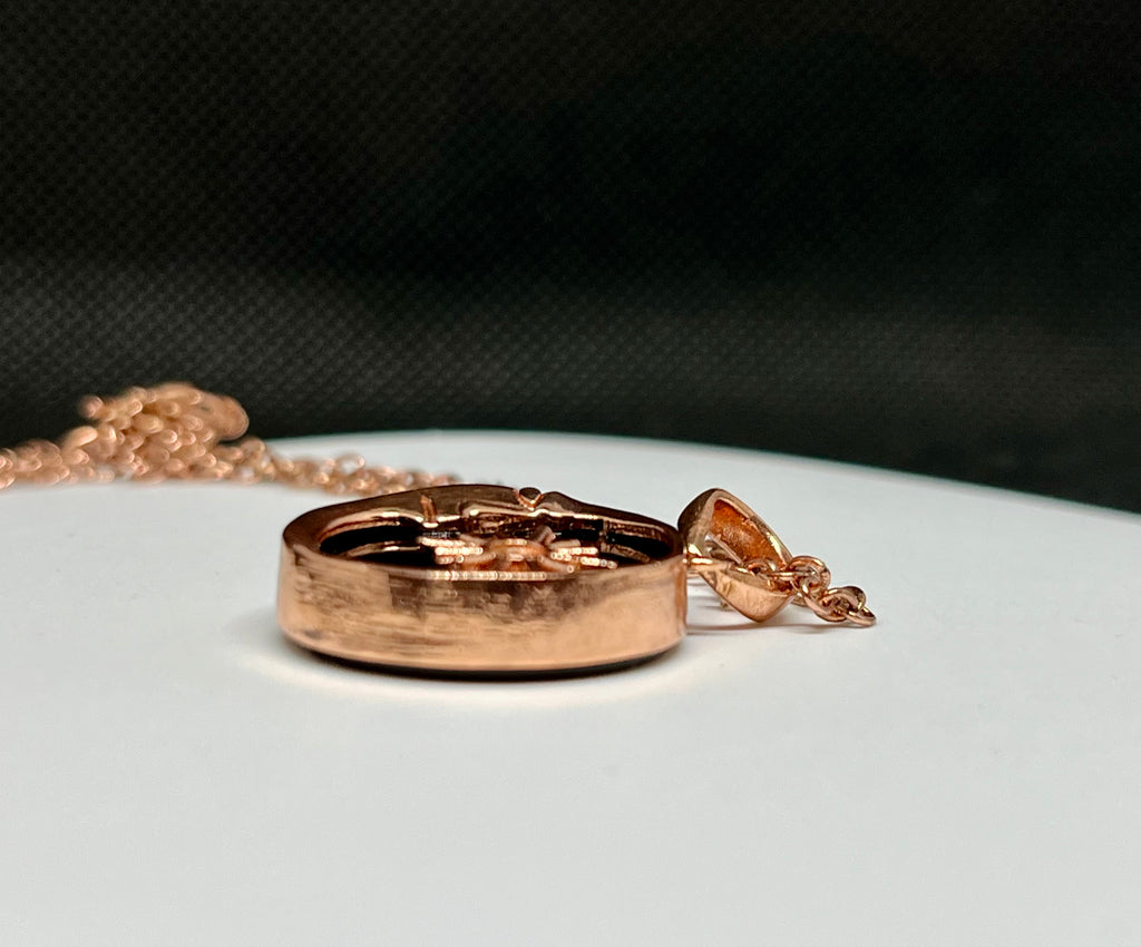 Deep, glossy obsidian adds dramatic contrast to the warm glow of the copper. Its smooth, dark surface enhances the intricate metalwork while symbolizing protection and grounding energy.